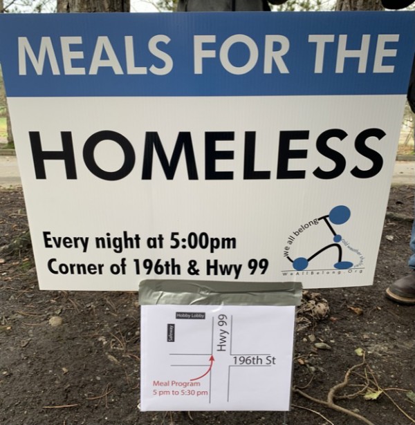 - Meal service for the Homeless by S. Sno. Cold Weather Shelter at the NW corner of 196th St. & HWY 99They serve everyday @ 5:00 pm.